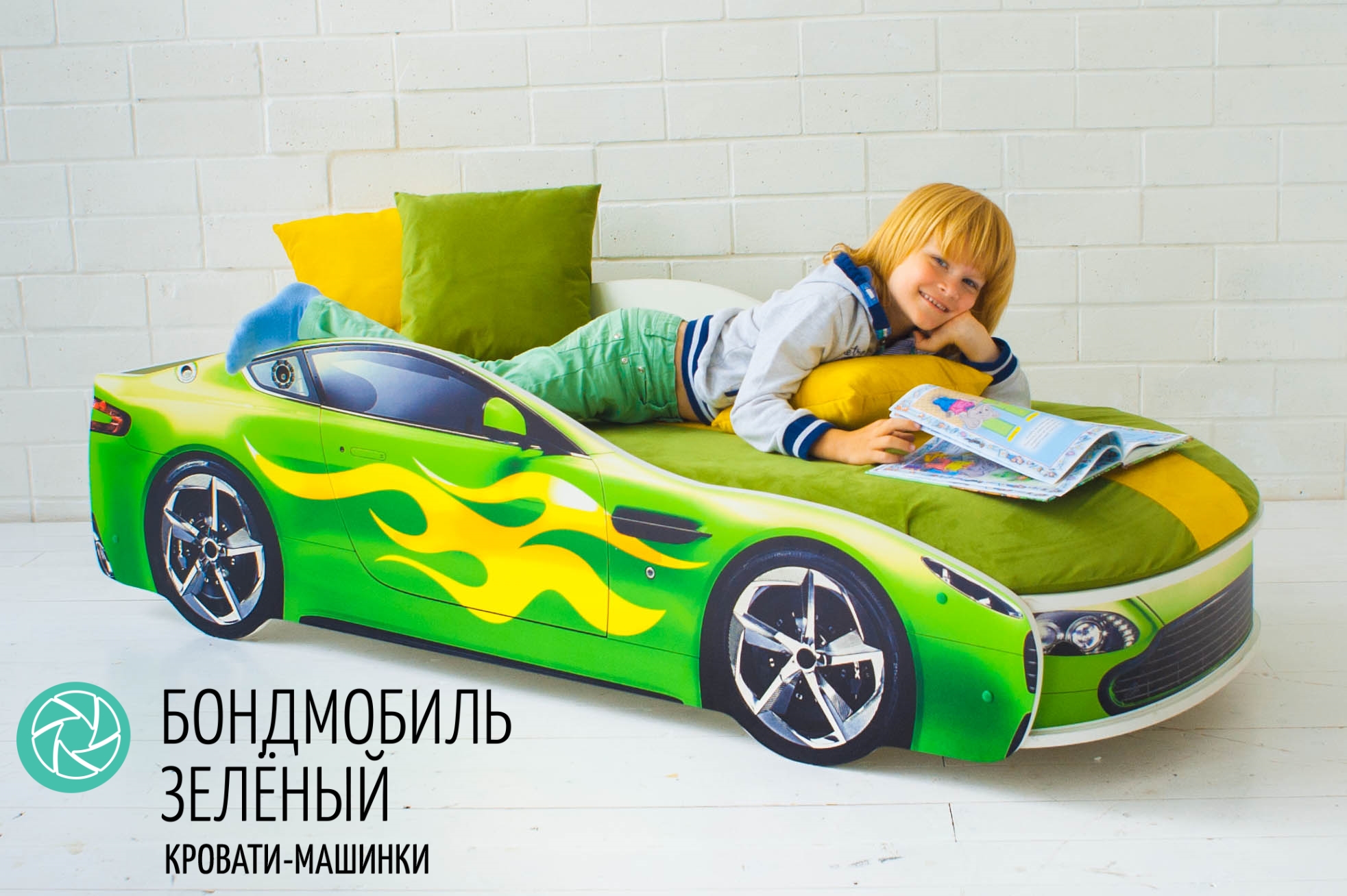 Магазин мебели «100Диванов» предлагает купить Детская кровать-машина «Бондмобиль зеленый» в Сургуте по выгодным ценам от производителя с доставкой.
