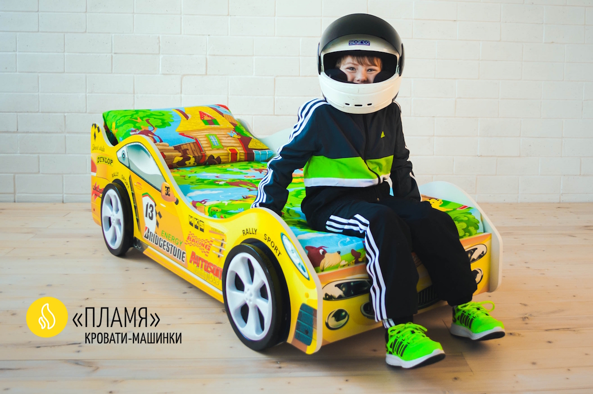 Кровать-машинка Пламя привлекает к себе внимание с первого взгляда. Дизайн гоночного автомобиля и яркая расцветка обязательно полюбятся мальчишкам от 2 до 12 лет. Для того, чтобы добиться большей схожести с настоящей машиной, модель можно оснастить пластиковыми объемными колесами, а для создания необычного эффекта установить на днище кроватки светодиодную подсветку. Кроме того, мы предлагаем дополнительно приобрести ортопедический матрас, выбрав степень жесткости для комфортного и здорового сна.