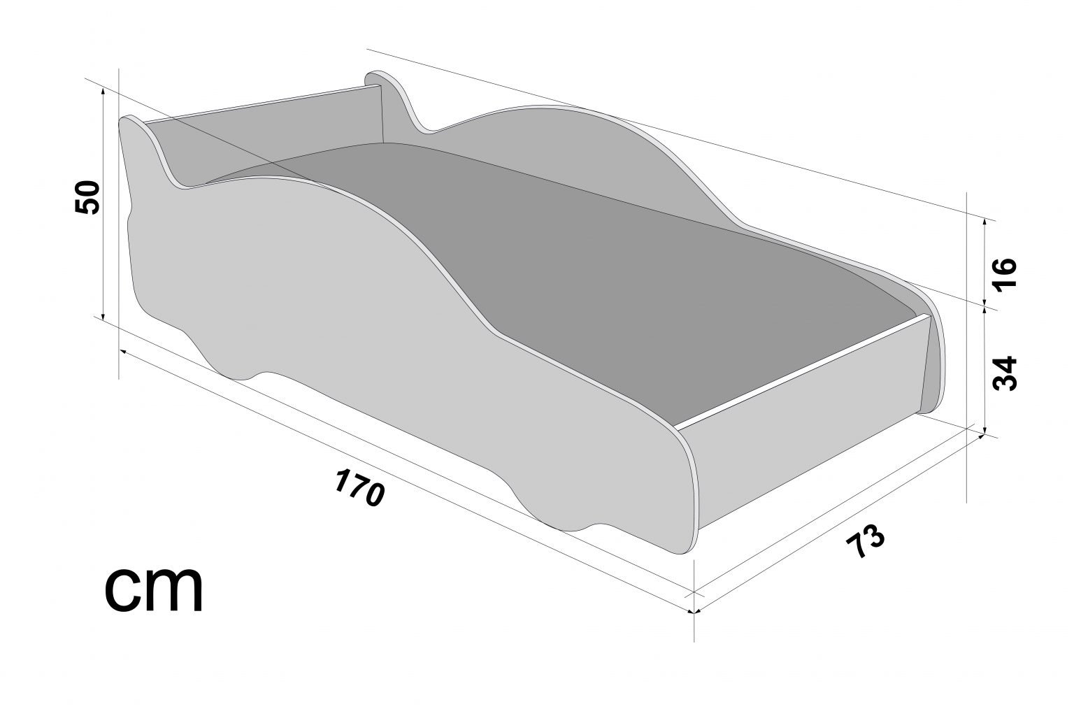 Кроватка удобна встроенным ортопедическим матрасом. В основании матраса цельная плита ЛДСП 16 мм. Дно с матрасом плавно поднимается и опускается с помощью пружинного тахтового механизма. Под матрасом размещен вместительный ящик, который удобно использовать для хранения белья или игрушек. При подъеме дно фиксируется и не падает, поэтому ребенок может самостоятельно поднимать матрас и убирать в ящик постель. Конструкция выдерживает нагрузку до 200 кг.