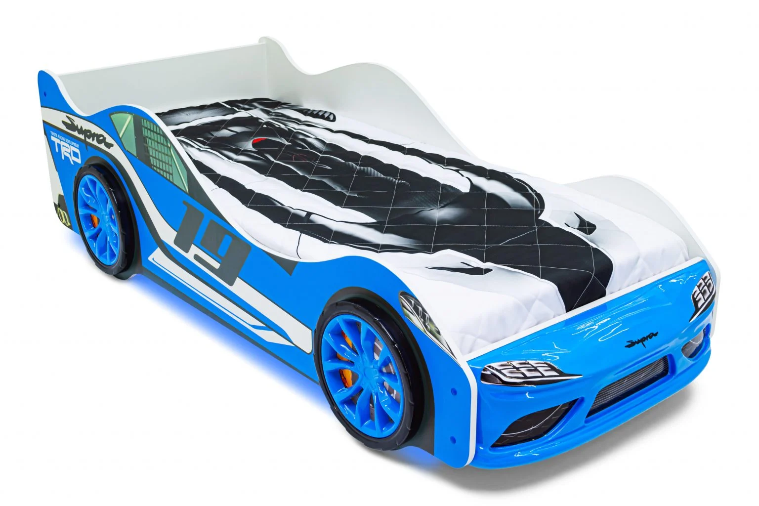 Детская кровать-машина “Супра” синяя украсит любую детскую комнату. Кровать-машинка станет любимым местом для сна и игр мальчика или девочки от 2 до 10-12 лет.