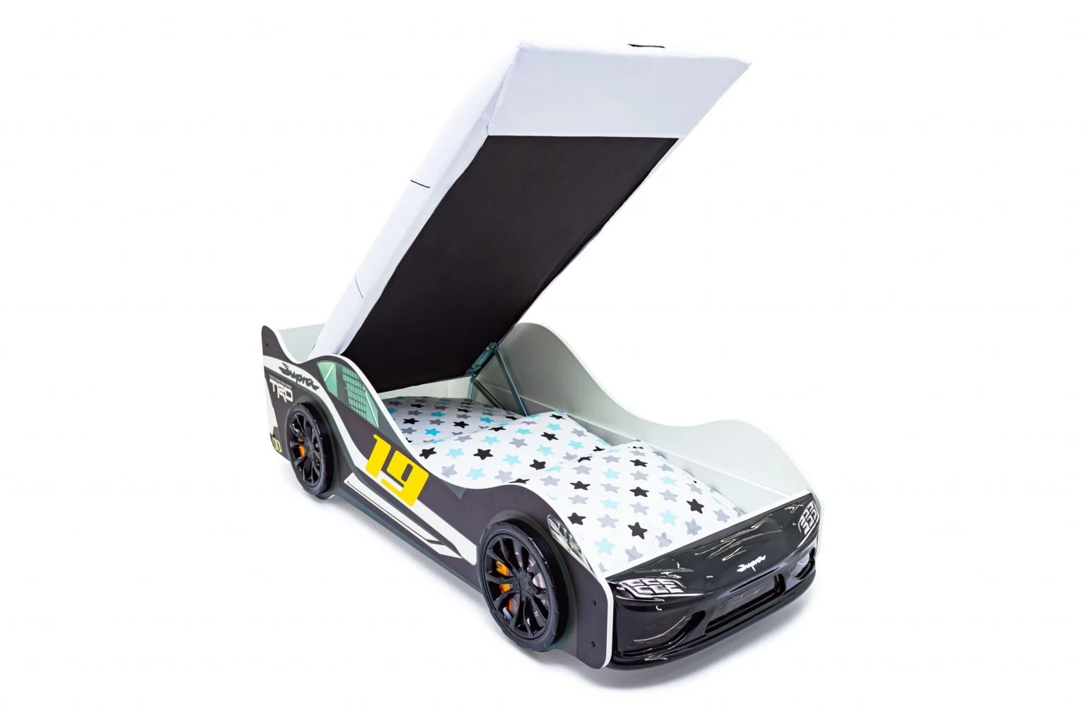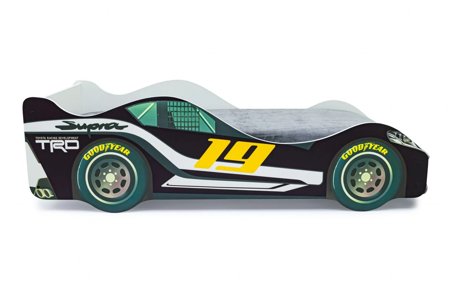 Детская кровать-машина “Супра” черная станет любимым местом для сна и игр мальчика или девочки от 2 до 10-12 лет.