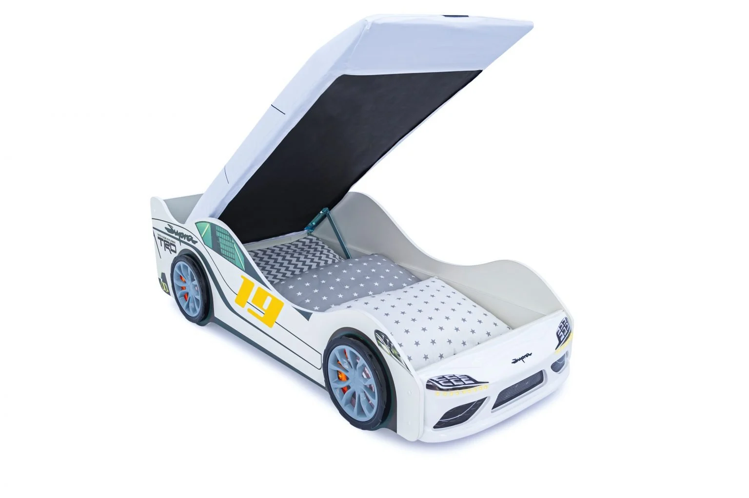 Магазин мебели «100Диванов» предлагает купить Кровать-машина "Супра" белая с подъемным механизмом и подсветкой фар в Сургуте по выгодным ценам от производителя с доставкой.