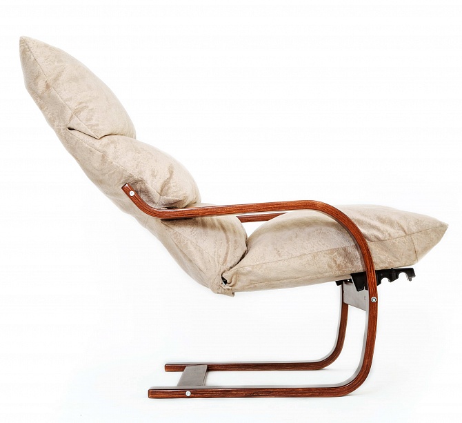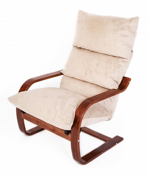 Магазин мебели «100Диванов» предлагает купить Современное кресло Онега 187 бежевое каркас вишня в Сургуте по выгодным ценам от производителя с доставкой.