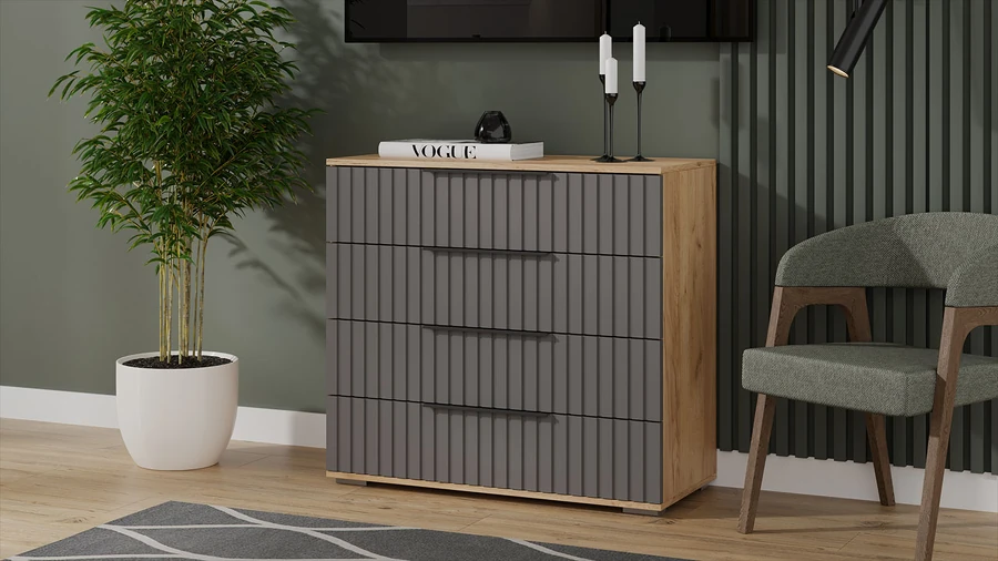 Комод Хилтон дуб крафт золотой/графит софт
