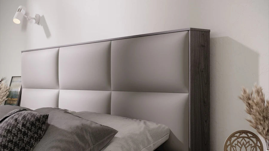Двуспальная кровать с ортопедическим основанием из коллекции "Либерти" имеет конструкцию с необычным эффектом парения. Мягкое изголовье выполнено из велюра цвета "Грей".
