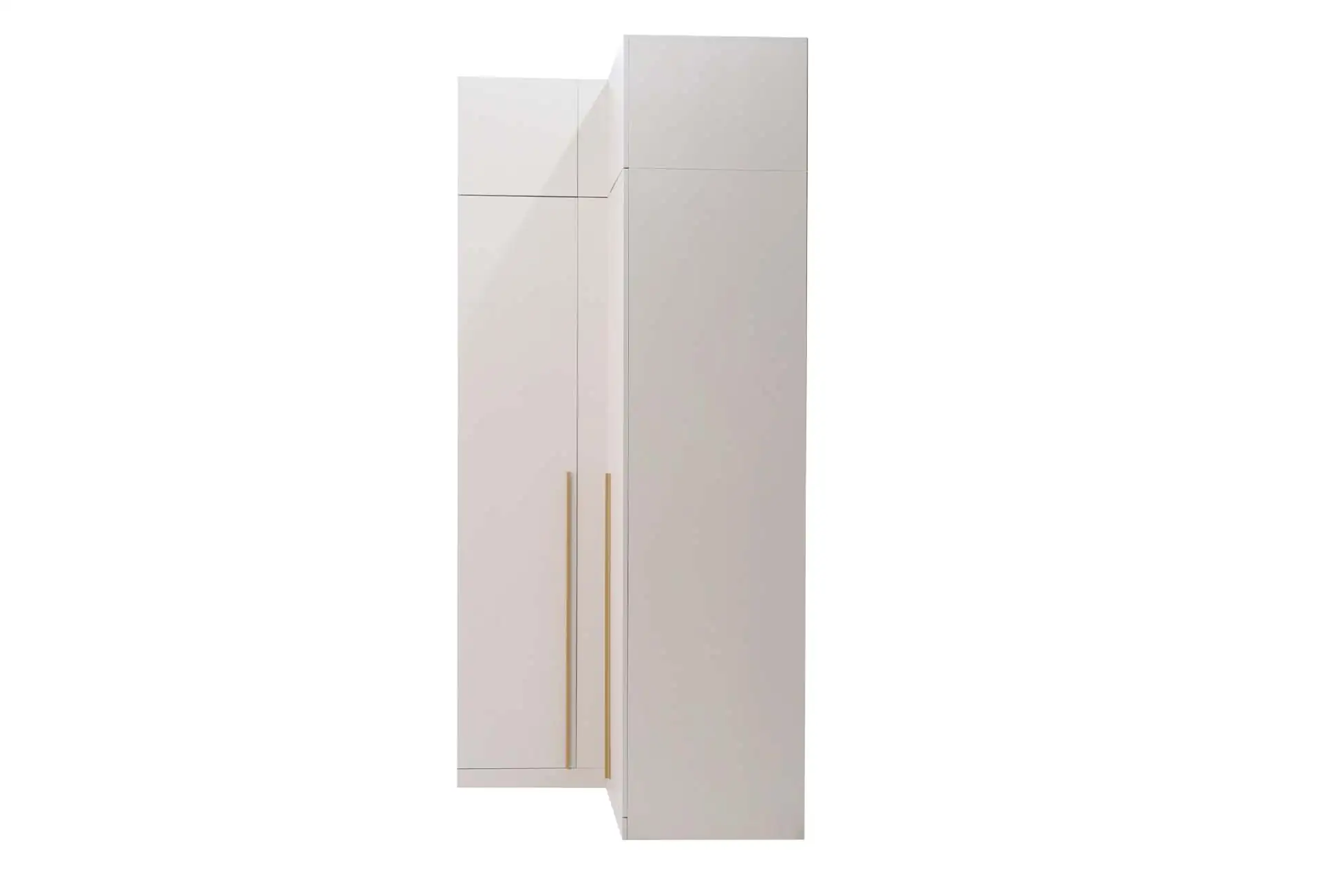 Вместительный угловой шкаф с двумя створками превращает неприметные уголки комнаты в просторное хранилище. Позволяет разместить значительно больше вещей, чем стандартные прямые модели. Оборудован штангами и полками. Возможно дополнительно укомплектовать секцией с ящиками “Николь 29.1”.