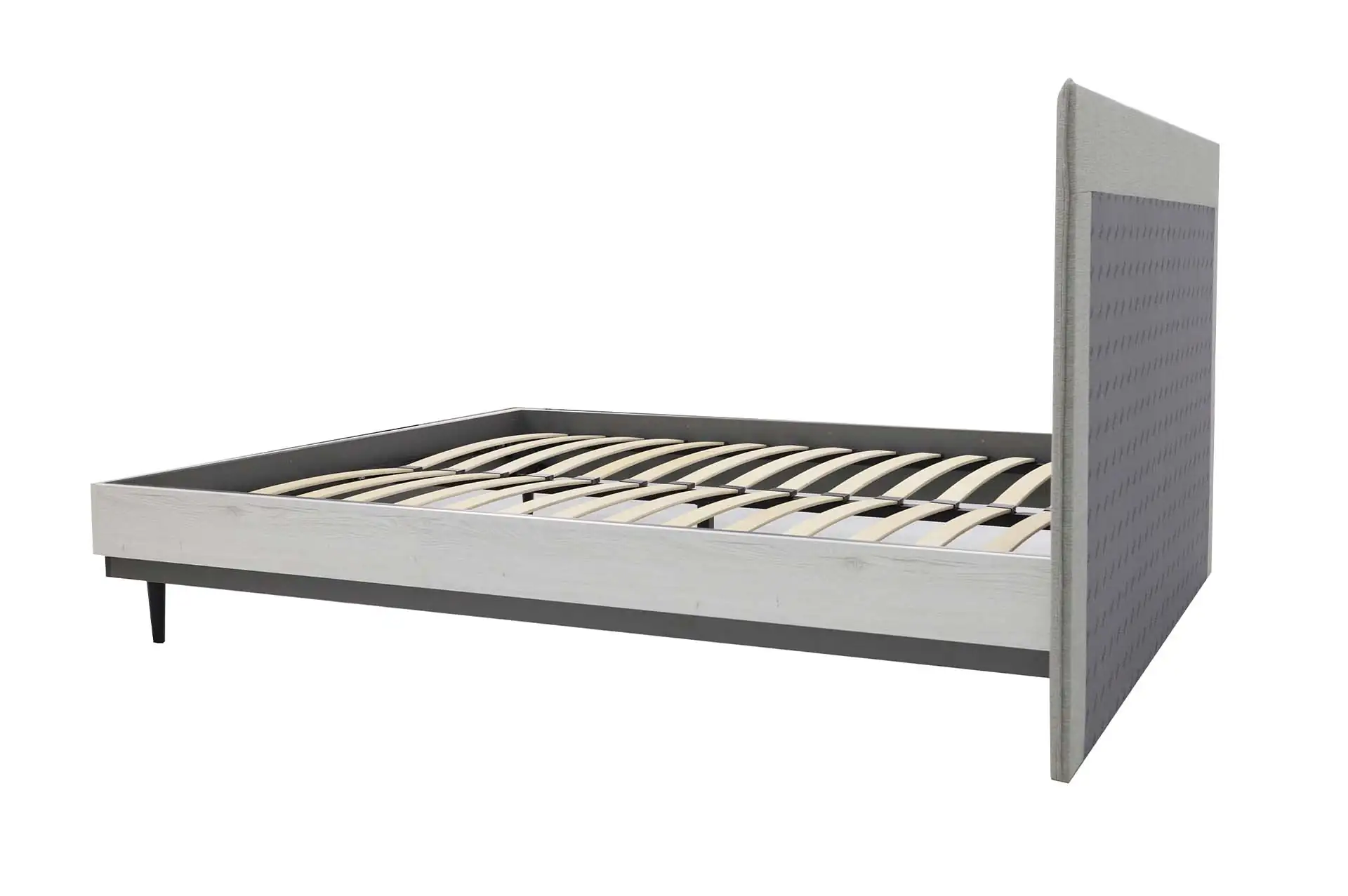 Кровать с мягким изголовьем серого цвета и лаконичным дизайном отлично впишется в интерьер вашей комнаты. Черные металлические ножки послужат отличной опорой для кровати и стильным акцентом. Отлично сочетается с мебелью из линейки «НИЛЬС». Ортопедическое основание приобретается дополнительно.