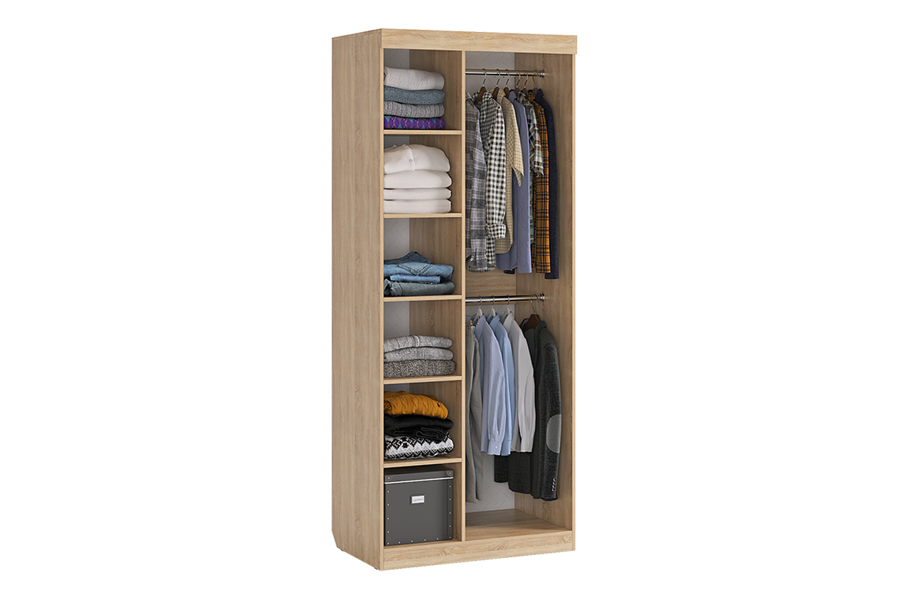 Этот шкаф станет настоящим спасением даже для небольшой детской комнаты. Широкая штанга предоставляет удобное место для висячей одежды, в то время как вместительные полки помогут организовать хранение белья и других вещей. Дополнительное преимущество модели — практичный вырез под плинтус, который обеспечивает идеальную установку.