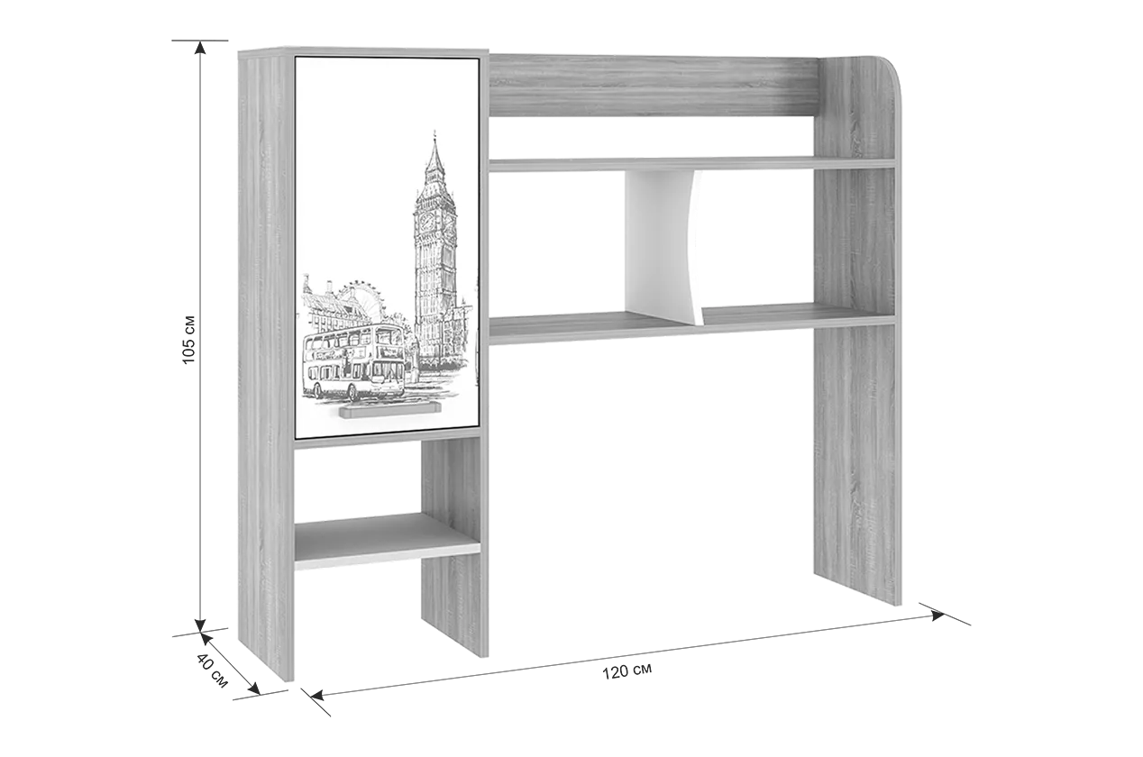 Надстройка для компьютерного стола «Лайт-1» – функциональное и универсальное дополнение к прямому и угловому компьютерным столам «Лайт-1» и «Лайт-2». Вместительные полки предназначены для книг, учебников и папок, более того, на них можно разместить сканер или принтер. Фасад закрытой ниши с полками с принтерным рисунком.